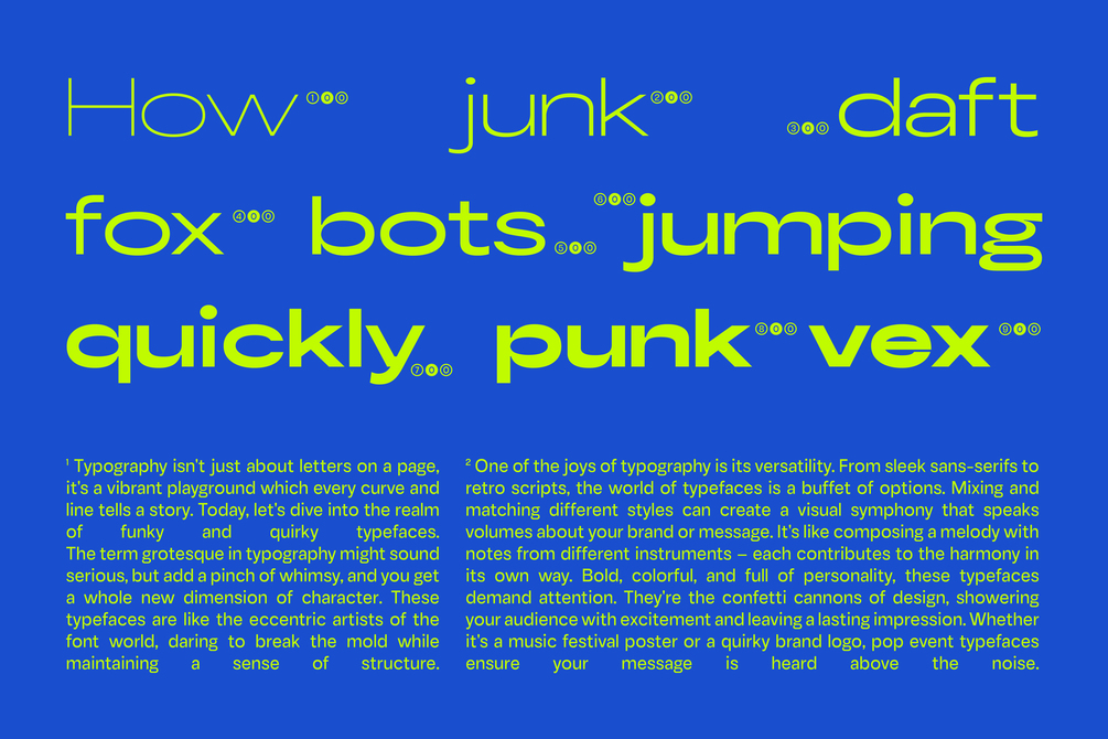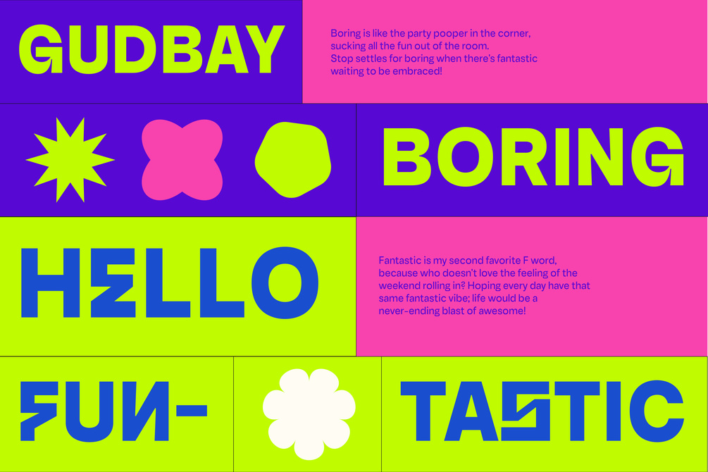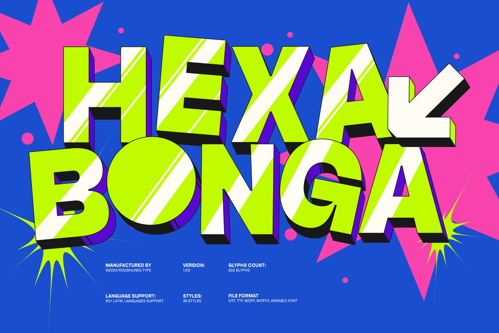 Download Hexabonga today and let your designs groove with its funky, quirky, and retro style. Elevate your creative projects with a typeface that's as maximalist as it is versatile. Get ready to make a statement with every headline and text you create!